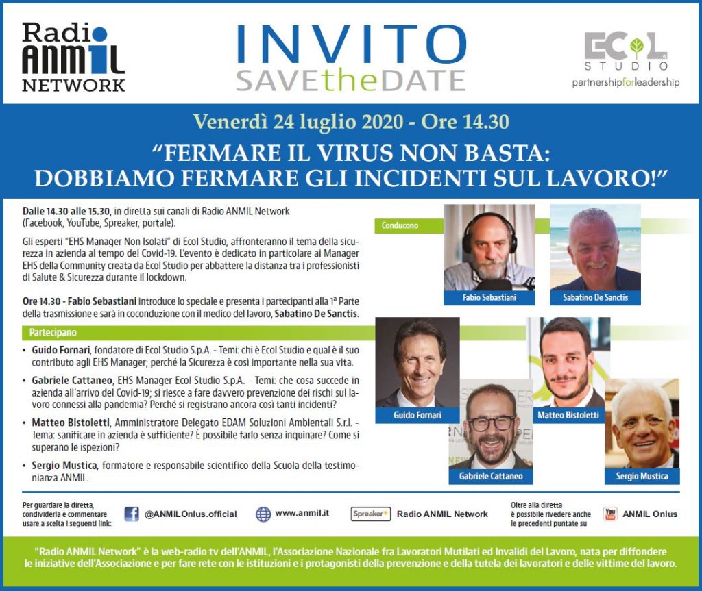 Venerdì 24 luglio 2020, dalle 14.30 alle 15.30 sui canali di Radio ANMIL Network, gli esperti di “EHS Manager Non Isolati” affronteranno il tema “caldo” della sicurezza in azienda al tempo Covid-19.